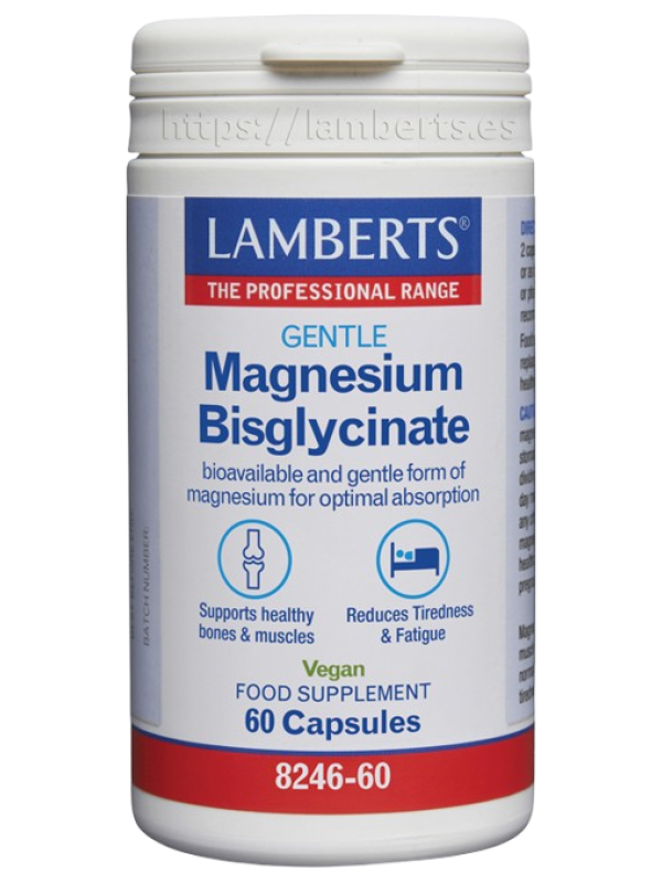 El Magnesio Bisglicinato de Lamberts® proporciona 150 mg de magnesio elemental por cápsula. Esta forma aminoquelada, unida a glicina, es reconocida por su excelente tolerancia, especialmente en personas con sensibilidad intestinal o que deseen evitar posible efecto laxante.