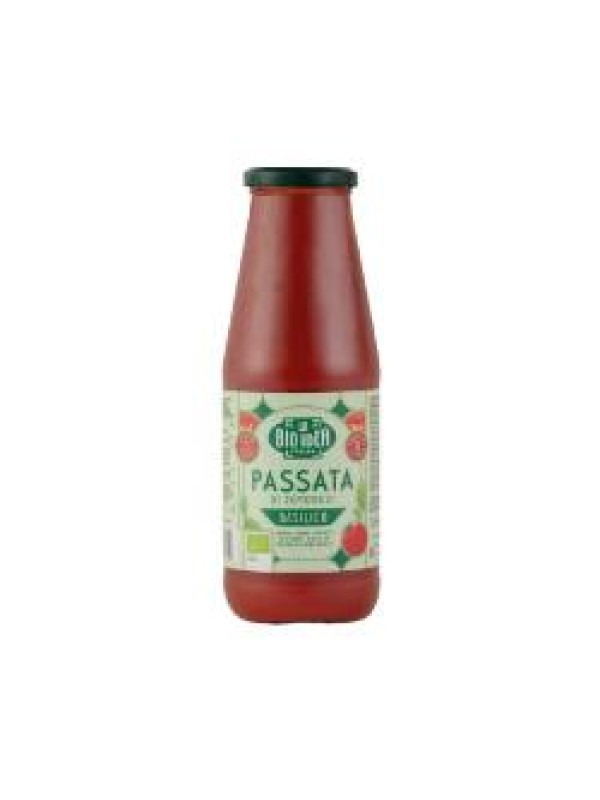 La palabra italiana passata significa básicamente tamizado.  La BIO IDEA Passata contiene tomates madurados al sol, recolectados en su punto óptimo de maduración y llevados inmediatamente a la fábrica de La BIO IDEA para ser seleccionados, tamizados, esterilizados y embotellados. Passata es la base ideal para salsa de tomate o sopa. Para darle más sabor italiano, Passata Basilico contiene albahaca