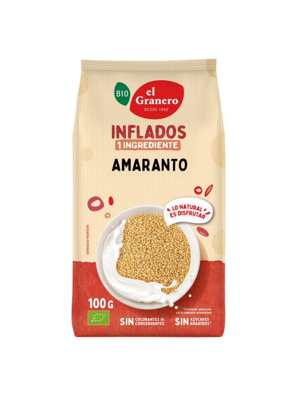 | AMARANTO HINCHADO 100GR BIO - EL GRANERO INTEGRAL - 8422584091557 Ingredientes: amaranto hinchado*. Puede contener trazas de gluten, sésamo, soja y frutos secos. (*)=De cultivo ecológico. | 2.50€ |