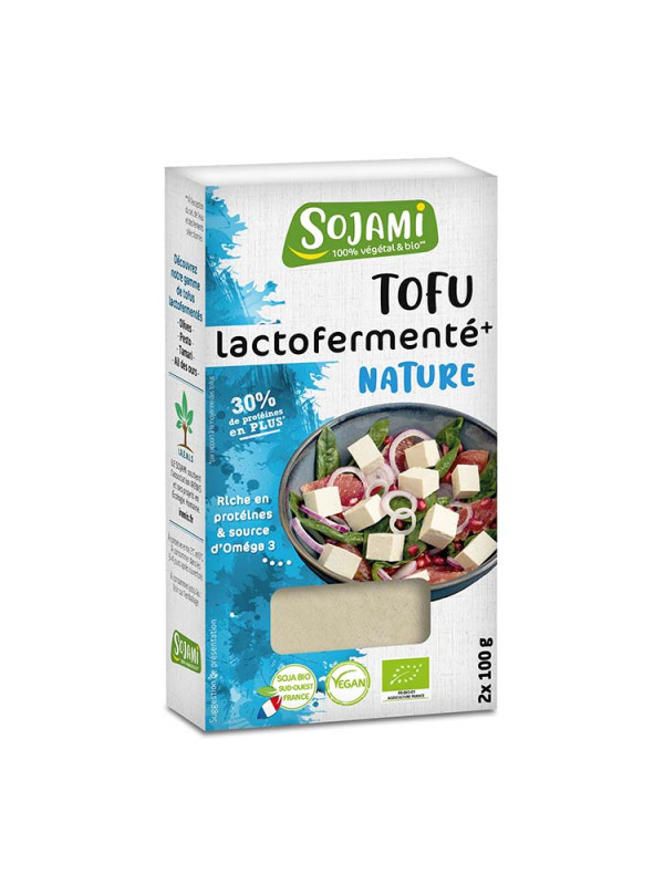Un tofu lactofermentado con una textura única de queso, que contiene hasta un 30% más de proteínas que un tofu clásico.